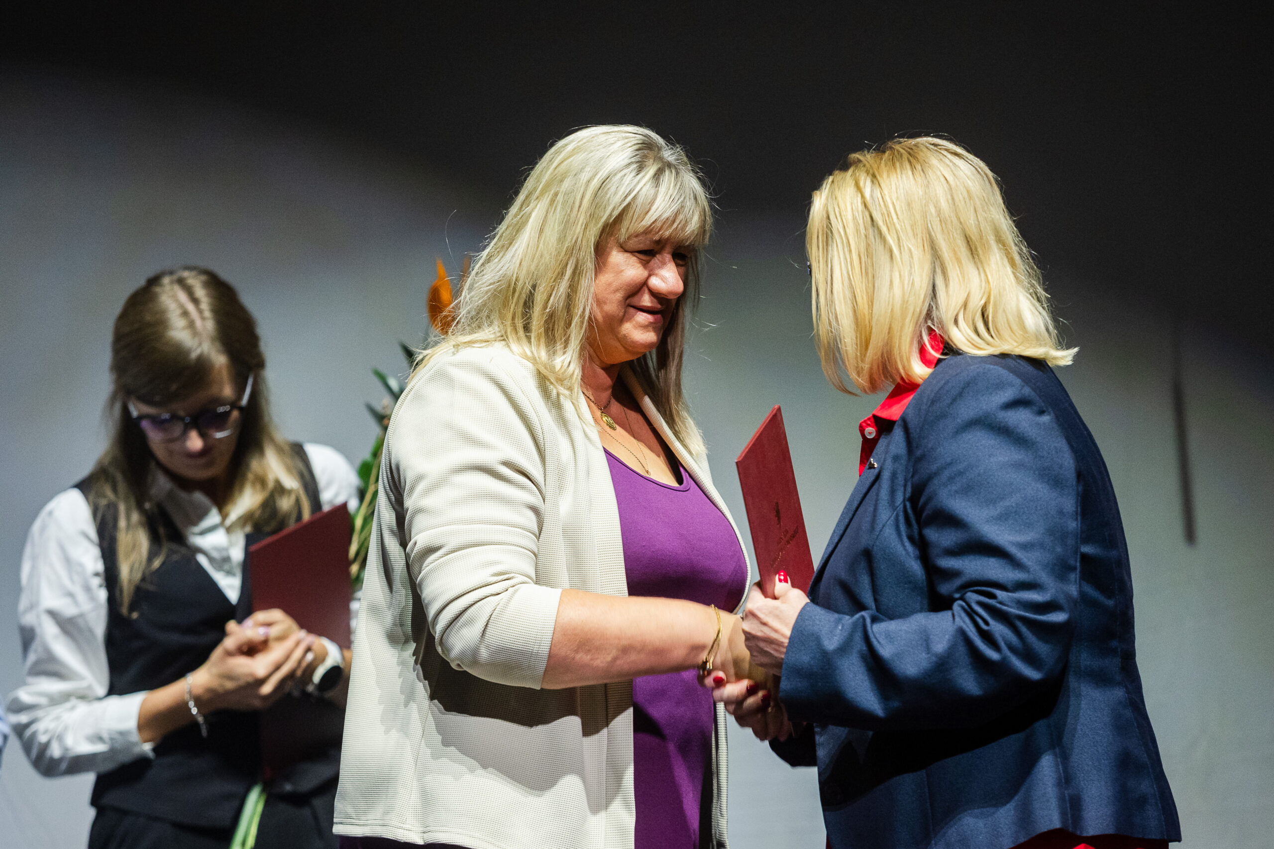 Barbara Nowacka, Ministra Edukacji, przekazała gratulacje i życzenia, które w jej imieniu odczytał przybyły na uroczystość Szef Gabinetu Politycznego ME – Bartłomiej Plewczyński.